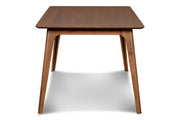The Oscar Mid-Century Modern Wood Dining Table blends timeless style with everyday function. Crafted from solid rubberwood and walnut veneers, it features a clear finish that highlights the natural grain. Clean lines and organic curves reflect classic mid-century design. Comfortably seating six, this table fits beautifully in kitchen nooks, dining rooms, or open spaces. With durable construction and warm walnut tones, it’s a stylish and practical centerpiece for any home.