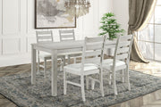 Experience the Pascal Dining Room Set in warm finish, a perfect blend of style and functionality. This set includes a 59-inch long rectangular wood dining table and matching chairs, all crafted from a combination of solid Rubberwood and manufactured woods for exceptional durability. The solid wood chairs are reinforced with side base stretchers for added stability, ensuring they stand the test of time. The set’s light, sophisticated finish is achieved through a meticulous multi-step process that enhances the natural beauty of the wood with rub-throughs and glazing. Each chair is designed with comfort in mind, featuring high-density foam cushions covered in 100% polyester fabric that is both soft and easy to maintain. The roomy dining table offers ample space for six, making it ideal for family dinners, entertaining guests, or enjoying game nights. The Pascal set’s design is versatile, with subtly rounded edges, tapered legs, and elegant ladderback chairs that fit seamlessly into transitional, farmhouse, and contemporary decor styles. This dining set not only provides a comfortable seating experience but also adds a touch of timeless elegance to your dining room.