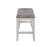 The Richland Counter Bench in Stonewash Gray is a versatile seating option that blends durability, comfort, and style. Expertly crafted from solid Rubberwood, durable manufactured woods, and genuine Acacia wood veneers, this bench is built to withstand everyday use while showcasing the natural beauty of real wood. The hand-applied vintage cream finish highlights the unique grain patterns, giving it a timeless and classic appeal. The plush upholstered seat cushion provides a cozy and inviting place to sit, making it perfect for family meals or casual gatherings. Pair it with the Richland dining set or use it as a standalone piece for added seating with style.