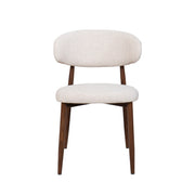 The Royce Side Chair set offers a stylish and practical seating solution with a distinct mid-century modern flair. Each set includes two side chairs featuring a gracefully curved back and sleek, low-profile design that adds a refined touch to any dining or living space. The soft, woven fabric is made from 100% polyester, offering a luxurious feel while being easy to maintain, perfect for everyday use. The sturdy metal seat frame, finished with an eco-friendly heat transfer process, replicates the look of walnut wood, combining a sophisticated appearance with long-lasting durability. With its blend of mid-century modern design, comfort, and resilience, the Royce Side Chair is an excellent choice for those seeking a timeless and functional seating option.