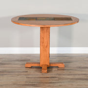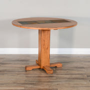 This Sedona drop leaf table is the perfect addition to any small kitchen or game room. Crafted with mindi solids and veneers. Table top features a natural slate inlay.