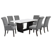 Sherry - 7 Piece Rectangular Marble Top Dining Table Set - Gray