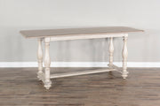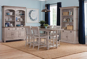 This Westwood Village counter height table is the perfect choice for smaller conventional sized space. Notice the beautiful tone on tone finish, the flyspecking and burnish, gives the finish dimension and depth. Its base features levelers and all pieces were built with high-quality mahogany solids and veneers.