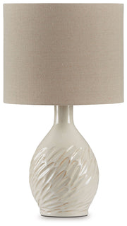 Exuding a relaxed vibe, this ceramic table lamp is a bright idea. The textured base and distressed matte glaze add character and casual elegance to your home. Whether you're working or unwinding, this lamp's tranquil lighting will create the perfect atmosphere.