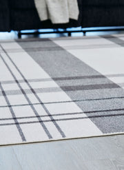 A fresh take on iconic plaid, this accent rug is both classic and contemporary. Its plaid design, with shades of gray crisscrossing against a solid cream background, has subtle variations that offer an artisanal feel. In addition, the machine woven material is durable and super soft underfoot.