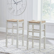 Bring the vintage casual vibe you love to the kitchen with this bar stool. A stylish seating solution in a rubbed-through finish, this charming stool completes your dining space with ease. The woven seat and wood stretchers create an effortlessly beautiful look with endless possibilities.