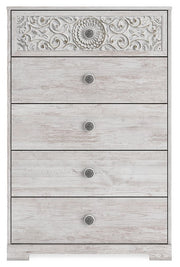 If it’s coastal chic or cottage quaint style you long for, this whitewashed chest of drawers invites you to go to town. Its distinctive weatherworn finish conveys an easy-breezy sensibility, perfect for a restful bedroom retreat. Rest assured, tastefully edited lines and medallion drawer pulls give this attractively priced chest a high-end aesthetic.
