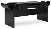 Inspired by art deco design, this softly shaped home office desk makes a lasting impression in a simply stunning way. Its magnificent curved silhouette is enhanced by a rich layered black finish on the textured wood grain surface. Complete with ample storage, a pull-out keyboard tray and USB charging, this is the all-in-one piece you’ve been looking for to elevate your contemporary workspace decor.