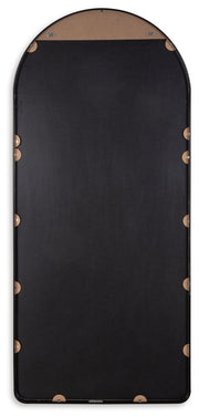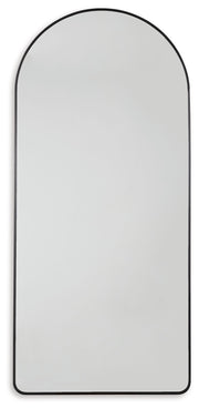 Beauty reflects in contemporary style with this floor mirror. Its black-finished metal creates a lovely curved frame. Standing almost six feet high, this mirror makes a case for statement style.