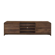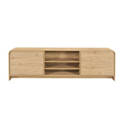 Introducing the Mara 70" TV Console, a fusion of eco-friendly construction and modern functionality. Crafted from durable manufactured wood and adorned with environmentally friendly laminate, this console boasts both durability and sustainability. With its spacious top surface, it accommodates large screen televisions with ease, while shelves offer ample space for entertainment components. Two roomy drawers discreetly store games, controllers, and other family room essentials. The minimalist design, featuring curved drawer fronts and waterfall-style tops and sides, adds a contemporary touch to any living space. Finished in a natural hue, it seamlessly complements a variety of décors. Assembly is a breeze, with easy-to-follow instructions for a hassle-free setup in approximately 45 minutes. Elevate your entertainment experience with the Mara 70" TV Console.