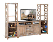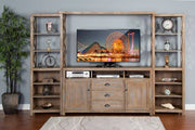 Constructed with mahogany solids and veneers with a Weathered Brown finish, this Durango entertainment wall is cheerful and full of features like adjustable shelves, drawers, and cord management for your electronics.