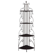 Ratchet up the romance in a traditional space. Designed to bolster the traditional look of a central living space, this corner bookcase is a great choice. Four graduated tiers create a subtle silhouette and offer plenty of space to display books, decor, and potted plants. Made from steel and wood-like material, it blends an earthy elegance with old fashioned charm. Warm any space with its luscious cappuccino and copper finish.