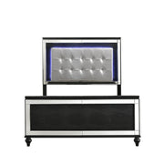 The Valentino Bed with Touch Lighting is designed to transform your bedroom into a glamorous sanctuary. This opulent set is meticulously crafted from a blend of manufactured and solid woods, ensuring lasting quality and a distinctive appearance. The bed showcases a dazzling crystal button-tufted padded headboard, mirrored trim, and exquisite alligator embossed inlays, all of which evoke an unparalleled Hollywood glam vibe. The sophisticated touch-controlled LED lighting offers soft, ambient illumination, creating an intimate and luxurious atmosphere. This magnificent bed set brings a touch of star quality to your contemporary bedroom suite, seamlessly combining extravagant style with exceptional craftsmanship.