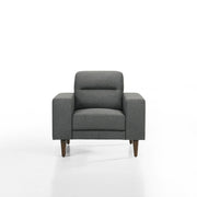 - Transitional Style: Extra wide track arms, tight back cushions with tailored center stitch and wood legs provide the versatile style for your living room chair.