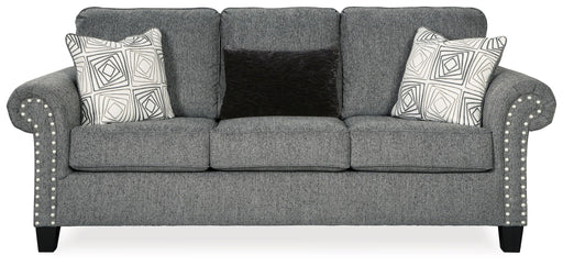 A contemporary dream. This sofa checks off everything on your list. Its designer profile is accentuated with roll arms and pewter-tone nailhead tri...
