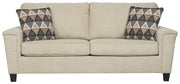 Covered in an upholstery loaded with plush texture, this less-is-more contemporary sofa is dressed to impress with angled side profiling and track armrests wrapped with a layer of pillowy softness for that little something extra. Crisp and clean, the 2-over-2 cushion styling adds up to one sensational look.