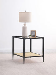 Amherst - Glass Top Metal with Cane Shelf End Table - Black