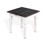 The Carriage House end table features European cottage styling in a warm two-tone antique white and charcoal gray finish. The distressed, white base with turned legs complements the planked top. Sturdily constructed with mahogany solids and mindi veneers, the Carriage House end table will add warmth and charm to your space.