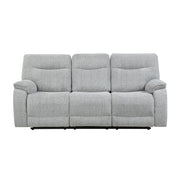 Experience the perfect combination of luxury, comfort, and functionality with the Chablis Reclining Sofa in Mist Gray. Expertly crafted with durable hardwood and plywood interior frames and supported by sturdy motion mechanisms, this sofa offers a long-lasting foundation designed to endure everyday use. Wrapped in soft, easy-care 100% polyester mist gray fabric, it delivers a luxuriously cozy seating experience with a modern, sophisticated touch. The thoughtfully designed seating blends resilient springs and plush foam cushions, ensuring lasting support and shape retention for consistent comfort over the years. Generously cushioned recliners invite you to sink in and unwind, offering ultimate relaxation at the touch of a button. For added convenience, built-in USB Type-A and Type-C charging ports keep your devices powered and within easy reach. The Chablis Reclining Sofa is the perfect centerpiece for a stylish and comfortable living space.