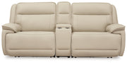 Double Deal - 2-Piece Power Reclining Loveseat Sectional With Console - Almond