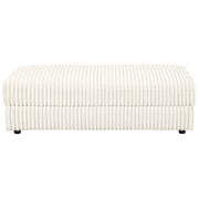 Complete your living space with the versatile and functional storage ottoman, designed to complement your sectional sofa set. Upholstered in luxurious ivory wide corduroy, this ottoman offers an exceptionally soft and inviting texture, mimicking the feel of fur. The storage ottoman provides convenient hidden storage for blankets, pillows, or other items, making it a practical addition to any room. It can also serve as extra seating or leg support for reclining, adding to the overall comfort and functionality of your living area. Perfectly designed to match your sectional, this ottoman enhances both style and convenience in your home.