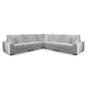 The Embrace Modular Sectional is an epitome of comfort and style, designed to cater to your lounging needs. It includes a right arm facing chair, a left arm facing chair, two armless chairs, a wedge, and eight accent pillows, all crafted from 100% charcoal gray polyester fabric that feels as cozy as a blanket. This sectional offers high-density, resilient foam cushions for relaxing and supportive seating, comfortably accommodating up to eight people. Its frame, constructed from a blend of solid and manufactured woods, ensures durability and long-lasting use. The luxurious ribbed channel fabric adds a touch of elegance, while the abundance of snuggly pillows invites you to lounge and unwind, making the Embrace sectional a versatile addition to any living space.