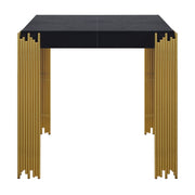 The Empire End Table is a sleek and durable addition to your living space. Crafted with eco-friendly manufactured woods and adorned with a sophisticated black finish, this table exudes contemporary charm while ensuring long-lasting strength and durability. Its modern metro style, characterized by gleaming gold tiered legs, evokes the enchanting ambiance of a city skyline shimmering under the stars. Elevate your space with the Empire End Table, where lasting construction meets stylish design.