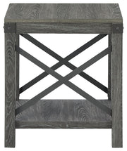 Open the door to modern farmhouse style with this square end table. The beautiful woodgrain look and classic crossbuck metal accents are a cool touch, while the lower shelf provides surface space for fashionable home accessories.