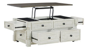 Havalance - Lift Top Cocktail Table with Storage Drawers - White / Gray