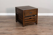 This Homestead occasional table set has beautiful rough sawn finish that makes it stand out. All pieces have nut head metal pipe accents and removable crates with metal bolt accents with decorative hardware.