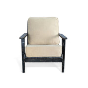 This classic mid-century modern accent chair was crafted with solid mahogany wood and plush seat and back cushions for a comfortable place to relax.