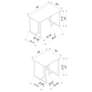 This three-piece table set includes a coffee table and two matching end tables, perfect for compact spaces such as dorm rooms or studio apartments. Each piece features a grey wood-look top made from engineered wood and laminate veneer, offering a weathered, rustic touch. The clean lines of the black powder-coated metal base create a sleek, contemporary aesthetic, blending modern farmhouse style with versatility. The open, airy design complements transitional or minimalist interiors.