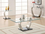 This end table combines style and durability with its tempered glass top and sleek design. The gracefully curved base features a brushed satin silver finish, adding modern elegance, while the polished black platform base provides striking contrast and sturdy support. Perfect for minimalist or contemporary spaces, this table blends functionality and refined design, enhancing small spaces with its sophisticated touch. A versatile accent piece for modern interiors.