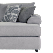 Introducing the Remi 2 Pc. Chaise Section in a sophisticated addition to your living space. This sectional includes a roomy Chaise Lounge and a Loveseat that seats three, accompanied by four coordinating accent pillows for added flair. Made in the USA and crafted with solid and manufactured wood frames reinforced with corner blocks, this sectional promises long-term durability and strength. The cozy 100% polyester upholstery is both easy to care for and meticulously tailored. Sink into comfort with 1.9 density, 4" thick seat cushions wrapped in Dacron for a plush and supportive seating surface, while sinuous springs provide additional resiliency. With its transitional style featuring clean square arms and stylish fabric selections, the Remi sectional effortlessly complements any décor, offering both style and comfort in one elegant package.
