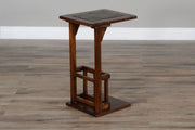 This Santa Fe sofa mate table was built with mahogany solids and veneers. This item comes with beautiful natural slates and requires a very simple assembly.
