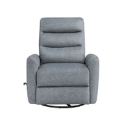 Discover the Takami Recliner, a sleek and contemporary addition to your living space. Equipped with an adjustable headrest and swivel base, this recliner effortlessly combines style and functionality. The triple roll backrest, featuring feather and foam cushions, guarantees a comfortable seating experience. The pocket coil and foam seat cushion provide the perfect blend of support and softness for a truly enjoyable lounging session. The modern chrome finish on the recliner pull adds a subtle touch of sophistication. Upholstered in leather-like polyester and PU, the Takami Recliner offers a soft and supple feel, making it an ideal choice for those seeking both comfort and modern aesthetics. Upgrade your home with this refined piece that seamlessly integrates into your contemporary lifestyle.