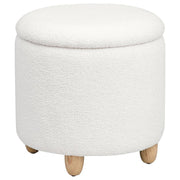 Valia - Faux Sheepskin Upholstered Round Storage Ottoman - Ivory