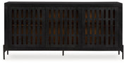This accent cabinet showcases high-end style with a captivating design. A cleverly placed cutout offers a sneak peek inside, making it a versatile choice for use as a buffet, console or media cabinet. Contemporary and casual, this piece epitomizes laid-back luxury.