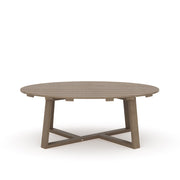 - Relaxed Transitional Style: The round, plank top table has a light natural wood finish that fits into any casual retreat.
