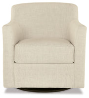 Down with uptown style. This swivel accent chair goes to town with a high-design aesthetic that's temptingly affordable. An ideal way to enhance your lounge space, this chair with a 360-degree swivel base brings casually chic style full circle.