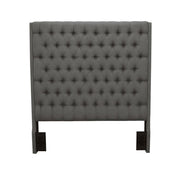 Change up the look of a master or guest bedroom with a stylish modern headboard. Its fully upholstered, complete with a straight lined silhouette that brings refined, understated style to your bedroom. It boasts plush cushioning wrapped in dark gray fabric upholstery for a plush, inviting look and feel. Button tufting adds character and classic dimensionality, perfect for a bedroom with elevated, honest style. A bed frame is required for use with this headboard.