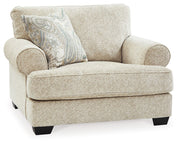 This oversized chair strikes a beautiful balance between classic and current. Its traditional elements include t-cushion seating and setback roll arms, angled for modern flair. A jacquard paisley pillow makes a muted, mellow complement to the chair’s casual textured chenille upholstery. And the choice of sandstone beige is a light and lovely style awakening.