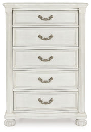 Transform your inner sanctum into a haven of timeless elegance and functionality. This traditionally styled chest of drawers is adorned in a classic antiqued white finish, highlighted by a serpentine-shaped front with thick decorative moulding. Its drawers are packed with ample storage possibilities. And did we mention the stylish reeded bun feet? Talk about relaxed refinement.