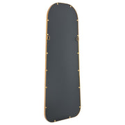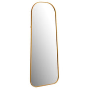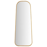 A fashion-forward look takes on simple style for perfect balance in a casual bedroom or dressing space. This floor mirror delivers a well-rounded design that dresses up or tones down a semi-formal or casual living area. A full-length design doubles the convenience of this elegant floor mirror, a suitable option for retaining the simplicity you crave yet spiced up with a sleek profile. A rounded edge silhouette and antique gold metal frame embellish stylish and sophisticated personality. Choose this mirror for its artistry and functionality.